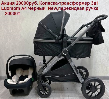 Акция 20000руб. Коляска-трансформер 3в1 Luxmom A4 Черный New,перекидная ручка