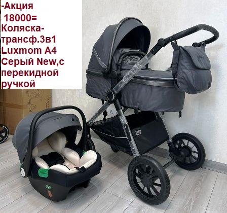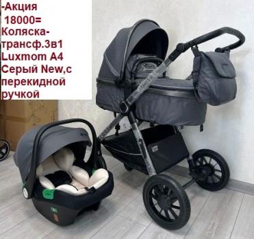 Акция 20000руб. Коляска-трансформер 3в1 Luxmom A4 Серый New, перекидная ручка