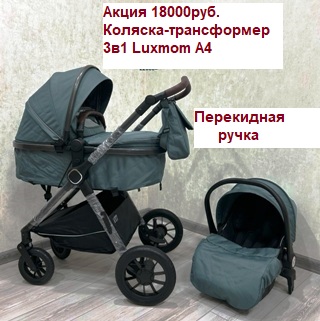 Акция 20000руб. Коляска-трансформер 3в1 Luxmom A4 Зеленый New, перекидная ручка