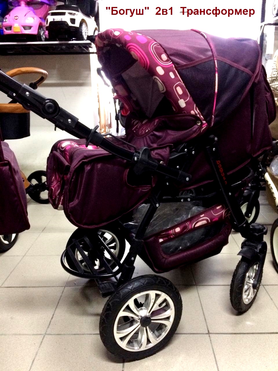 Акция 9000руб. Коляска-трансформер "Богуш 3S" Бордовый 2в1