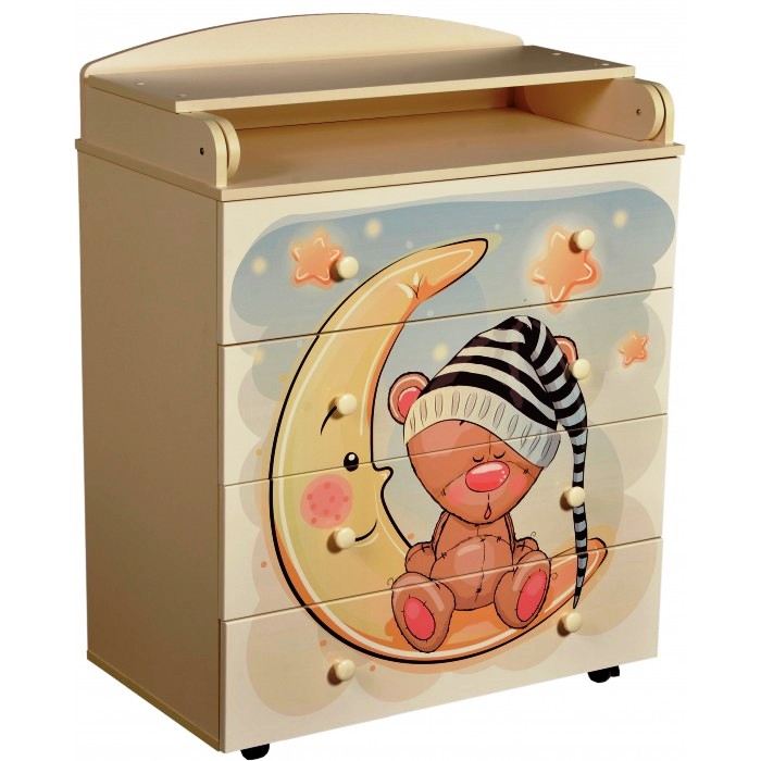Акция 8000руб. Комод МДФ "Lilu 7" Слоновый 80/4ящ."Мишки на луне" пеленальный