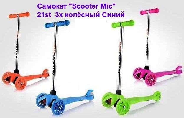 Акция 2000руб. Самокат 21st детский "Scooter Mic" 3х колёсный Синий