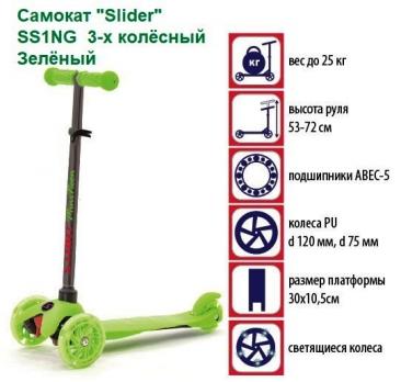 Акция 2700руб. Самокат SS1NG детский "Slider" 3-х колёсный Зелёный