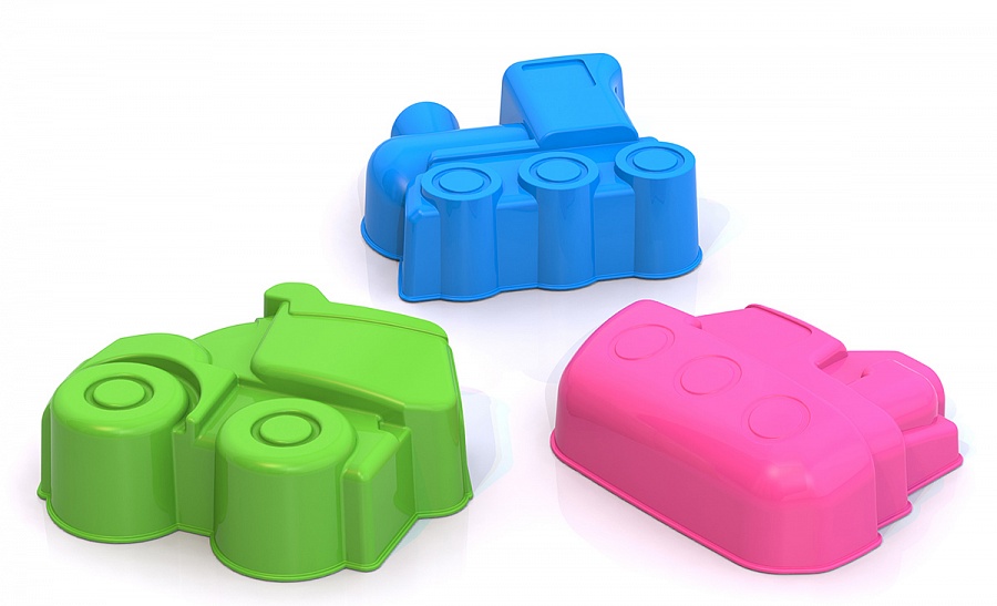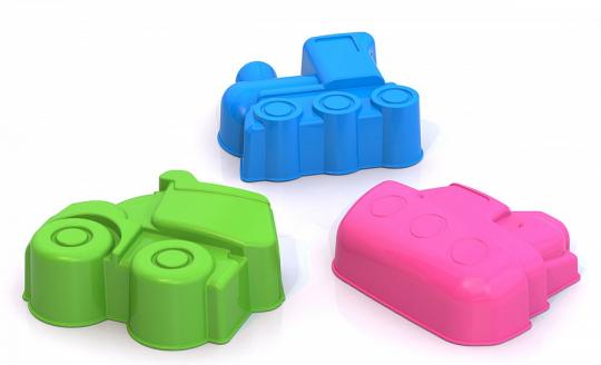 Игры с песком всегда способствуют развитию воображения, мелкой моторики рук, а формочки из этого набора еще и знакомят ребенка с разными видами транспорта. С помощью них можно "построить" точные копии грузовичка, кораблика и паровозика. В каждом наборе 3 цветные формочки.