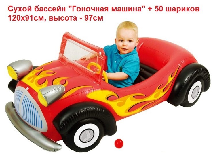 Сухой надувной бассейн "Гоночная машина" с множеством шариков подходит как для игр в помещении, так и для отдыха детей на даче и за городом. Сколько радости и удовольствия получит ваш малыш, играя в этом бассейне, особенно если его радость разделят друзья! Дети непременно начнут играть с шариками: катать их, подбрасывать, перекидывать друг другу, выбрасывать из бассейна и постараться забросить точно в него. В игре с шариками развивается ловкость, меткость, координация движений, умение управлять своим телом, общая моторика.