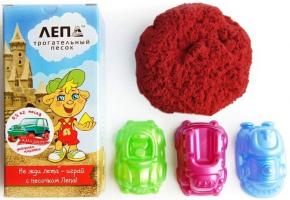 Трогательный песок Лепа 0,5 кг (красный) с набором формочек "Машинки"Кинетически...