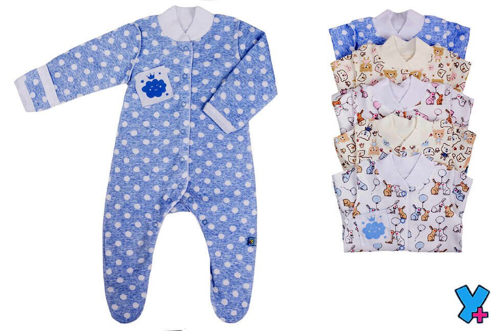 Комбинезон ясельный из набивного интерлока швы наружу с аппликацией и печатью на полочке, длинный рукав трансформер, застежка на кнопках по центру и вдоль ножек, воротник и край рукава обработаны рибаной х/б.