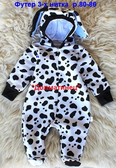 Комбинезон для новорожденного Долматинец на молнии. 74-80 штанишки на манжетах без лапок.