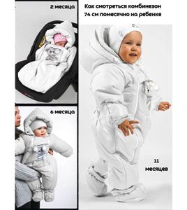 Данная модель легко из конверта превращается в полноценный комбинезон. Покупая одну вещь вы получаете - две в одной! 1. Зимний конверт 2. Зимний комбинезон Универсальная модель позволит значительно сократить денежные средства! Длинная застежка молния, которая позволяет легко одевать малыша, не причиняя ему неудобств. На рукавах манжет-отворот, которым можно закрыть ручки ребенку. В комплекте пинетки на кнопке. Комбинезон из овечьей шерсти - это лучшее, что можно придумать для вашего младенца. Верх комбинезона - 100% полиэстер Наполнитель - синтепон 200 г. Отстегивающаяся подкладка - 10% овечья шерсть меринос Уход: Бережная стирка при 30 градуса