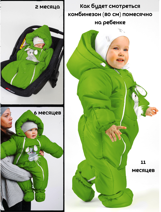 Комбинезон-конверт 147шм/ун р.80 Зелёный унисекс "Трансформер"демисезон 1