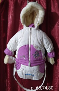 Комбинезон - трансформер зоимний 5 в 1 со съёмной меховой подстёжкой и съёмной опушкой на капюшоне (куртка, полукомбинезон, конверт, варежки, пинетки и сумка для мамы).