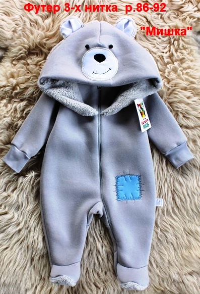 Комбинезон К21/3-Фм р.86 серый мальчики "Мишка" 3-х нитка 2