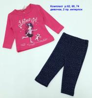 2 предмета, размеры: 62-68-74-80 для девочки, 95% хлопок,5% лайкраВ разных цвет...