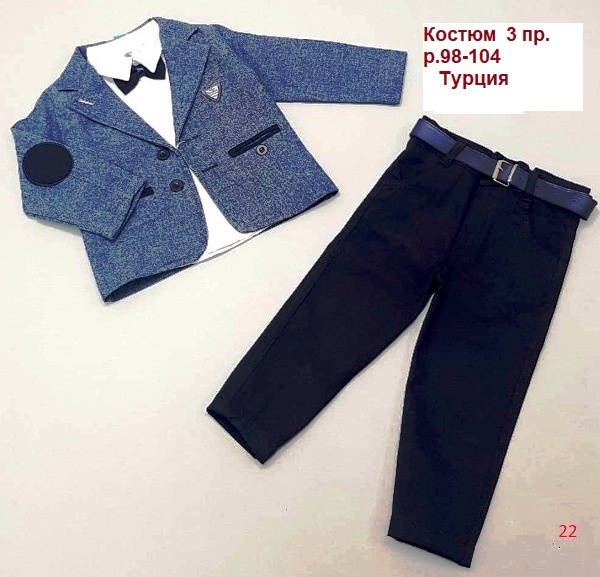 В избранном Убрать В избранное Костюм 47635м р.98 сер/чёрный мальчики (3пр) трикотаж 1 Артикул: 47635м Есть в наличии: последний товар Сообщить когда будет Вес: 0 кг. 0 руб. 2 700руб. Купить Купить одним кликом Сравнить Описание Отзывы 3 предмета: Пиджак, рубашечка, брюки95% хлопок,5% лайкраТурция
