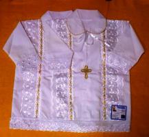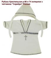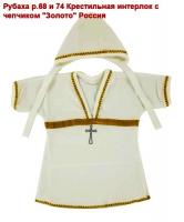 РоссияКрестильная рубашка на кнопке,с отделкой "крошет" и стразами,однотонная,тр...