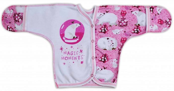 Распашонка изготовлена из 100% хлопка (футер с начесом), качество пенье. Распашонка оборудована застежками-кнопочками. Модель отшивается с наружными швами и закрытыми ручками-отворотами. Подойдет для использования, как в домашних условиях, так и для прогулок под осенние или зимние комбинезоны и костюмы.