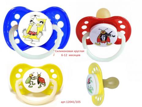 Пустышка 12041 Силикон 6-12мес.круглая цветн. 27