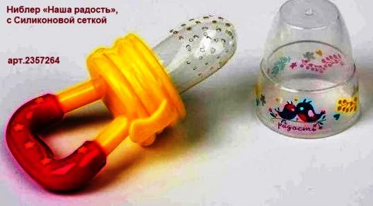 Ниблер - это приспособление для безопасного прикорма. Применяйте его, когда ребёнок переходит с кашки и молока на твёрдую пищу. Изделие разовьёт у крохи жевательные навыки. Форма и размер разработаны с учётом возрастных особенностей малютки. Положите в силиконовую сеточку кусочки фруктов или овощей и предложите карапузу. Крупинки останутся внутри контейнера. Малыш попробует взрослую еду без риска подавиться. Ниблер также безопасно массирует дёсны в период прорезывания зубов. Изделие выполнено в двух основных цветах. Ручка оформлена узором в виде звёздочек. Рисунки на ободке крышки понравятся малышу, а надпись вызовет умиление у взрослых. Качество и безопасность для здоровья подтверждены сертификатом соответствия ЕАС. Товар рекомендован для деток от 5 месяцев