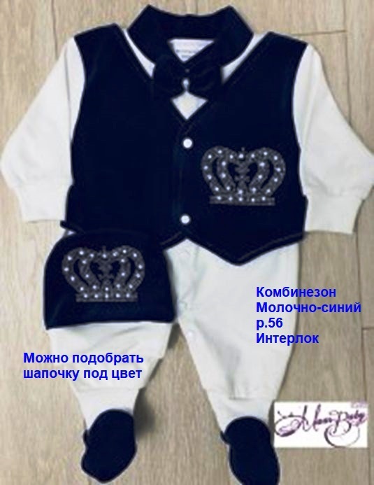 Комбинезон 7143/8м р.56 молоч/синий мальчик интерлок 2